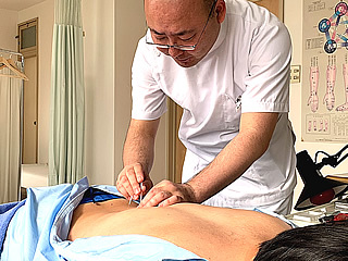 施術前に術衣に着替えていただき(着替える必要がない場合は必要ありません)、質問をさせていただきながら、取穴(身体を治療するのに必要なツボを決める)していきます。患者様の症状に適した施術計画に基づき丁寧に説明を行いながら施術を行います。できる限り痛みの伴わない施術を心がけています。